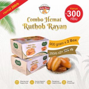 Rp 520.000Original price was: Rp 520.000.Rp 300.000Current price is: Rp 300.000.Add to cartHemat 220 rb, Ruthob Rayan 900 gr + Medjol 1 kg, menjadi hanya 300 rb saja